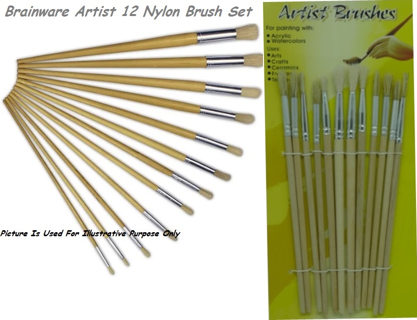 Brainware Artist 12 Nylon Brush Set- Can Be Used For Water Colour And Poster Colours, Suitable For Acrylic Painting, Oil Media, Watercolours, Glide Easily On The Canvas Or Any Medium, Perfect For Fine Details And Lines, Retail Packaging, No Warranty