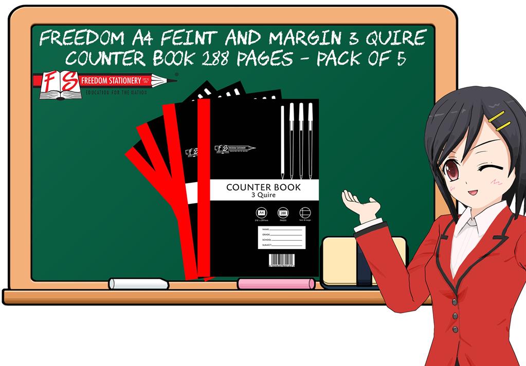 • Description Freedom A4 Counter Book 3 Quire 288 Pages Feint And Margin