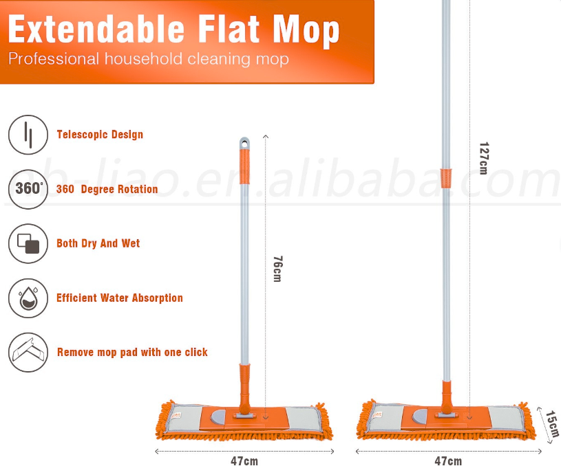 •Description: Kleaner Microfiber Extendable Flat Mop