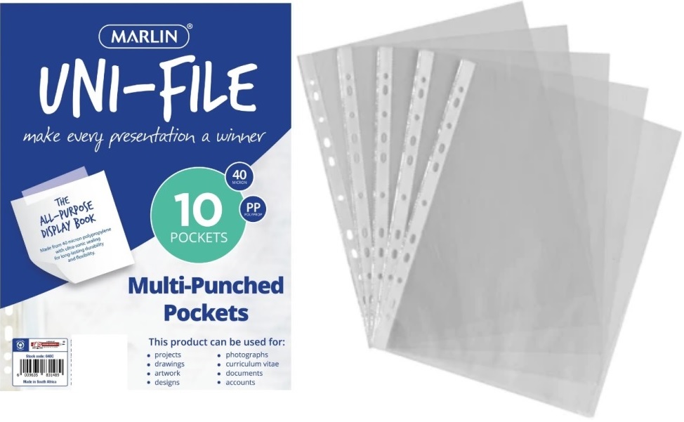 SKU: 6009608640438 Categories:Filing and Folders, Filing Sleeves and Pockets, Grade 1 Stationery, Grade 2 Stationery, Grade 3 Stationery, Grade R Stationery Brand: Marlin