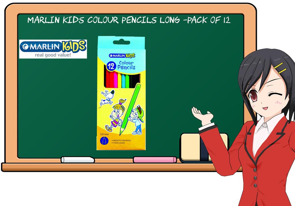 Marlin Kids Colour Pencils Long ( Pack of 12 ), Retail Packaging, No Warranty