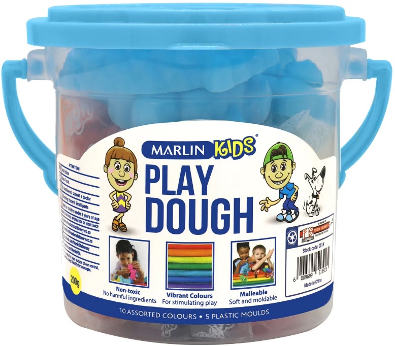 • Description Marlin Kids Play Dough 200g Bucket- Pack of 10 Assorted Bright Colours