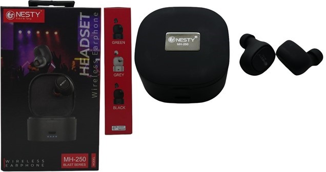 Nesty Blast Series MH 250 True Bluetooth Wireless Earphones – Black, With Charging Dock, Built In Microphone , Bluetooth Version 5.3, Up To 10 Metres Transmission Distance, Talk Time: Up To 2 Hours, Music Playing Time Up To 3 Hours, Built-In 30mAh Rechargeable Lithium Polymer Battery Per Earphone , 250 mAH Charging Bock, Changing Time 1-3 Hours, Standby Time: 130 Hours, One-Button Touch Control, Compatible With All Bluetooth-Enabled Devices, Colour Black, Retail Box, 6 Months Limited Warranty