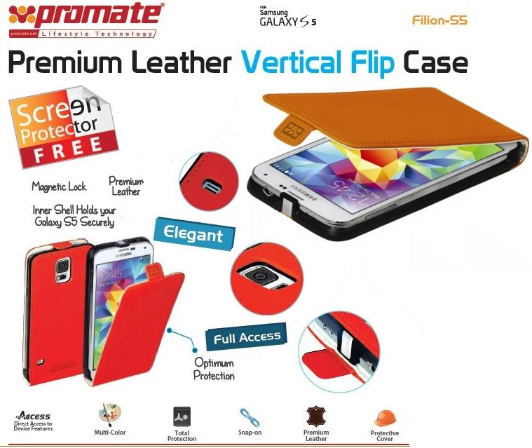 Promate Filion-S5 Premium Leather Vertical Flip Case For Samsung Galaxy S5