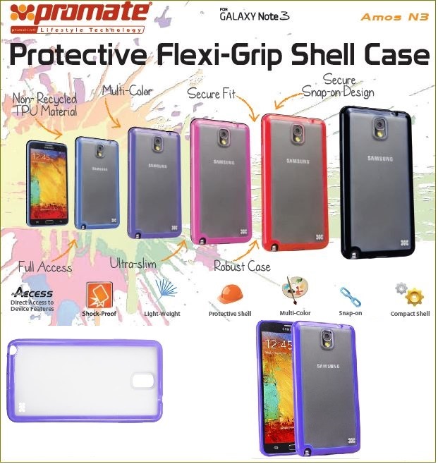 The Promate Amos-N3 Protective flexi-grip designed shell case for Samsung Note 3 is a newly designed case to fit perfectly the Galaxy N3 with easy snap- on shape. Ultra-light and fully flexible, protecting your smartphone form daily scratches and scuffs; AmosN3 is the case that will meet everybody’s expectations when it comes to design and practicality it also features full access to all the phones ports, Amos N3 is the case for all.