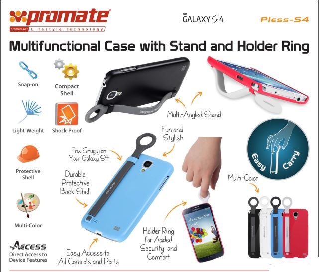 Promate Pless-S4 Multifunctional Case with a Stand and a Holder Ring for Samsung Galaxy S4-White Retail Box 1 Year Warranty