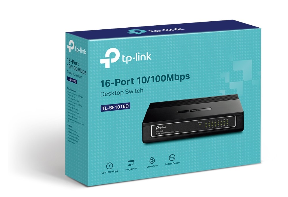 TP-Link TL-SF1016D 16-Port 10/100Mbps Desktop Switch, Retail Box, 1 year Limited Warranty