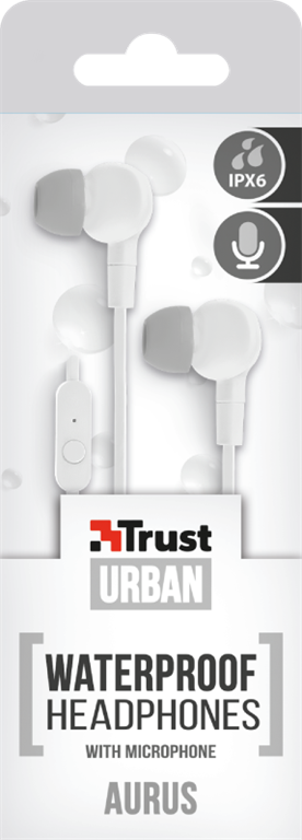 Trust TRS-20835 Aurus Waterproof Earphones – White, Retail Box , 1 year Limited Warranty