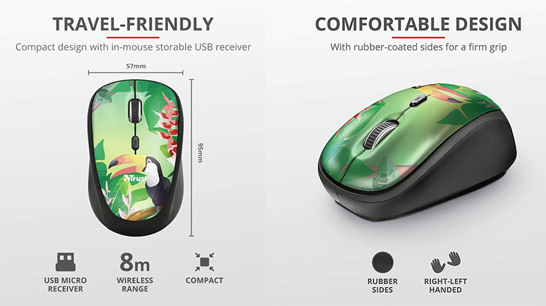 Trust YVI Toucan Wireless Mouse offers comfortable, reliable performance with its ergonomic design and wireless freedom. Featuring a responsive optical sensor, this mouse is ideal for both left- and right-handed users. Its compact size makes it perfect for on-the-go use, while the adjustable DPI ensures precise control. With plug-and-play USB connectivity, it’s easy to set up and use instantly. Packaged in a retail box, it comes with a 1-year limited warranty for added peace of mind.
