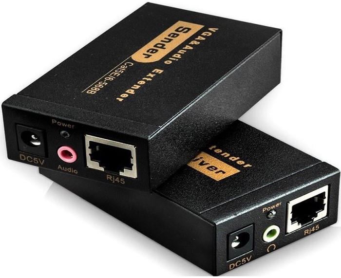 UniQue 100M 1080P VGA And Audio Extender – Plug and Play, Connect Up to 100M, 1080P Full HD VGA Port, RJ45 Port For Cat5e/6, Single Network Extension, Audio Port, LED Power Indicator, Includes Receiver And Sender, DC 5V Power Supply, Retail Box, 3 Months Warranty