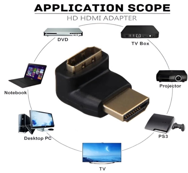 • Product Type: 90 Degree Fixed Angle Coupler Adaptor Male To Female HDMI Connection
