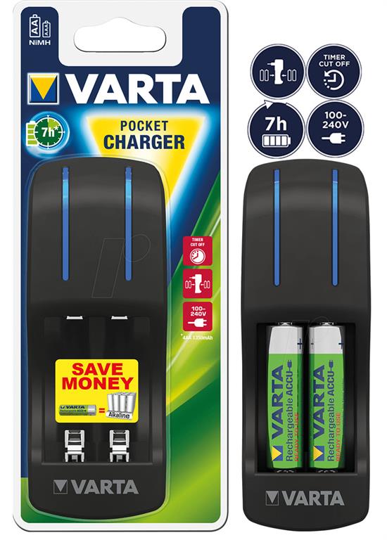 Varta Pocket Charger – Charges 2 or 4 AA/AAA at the same time, Retail Box , No Warranty